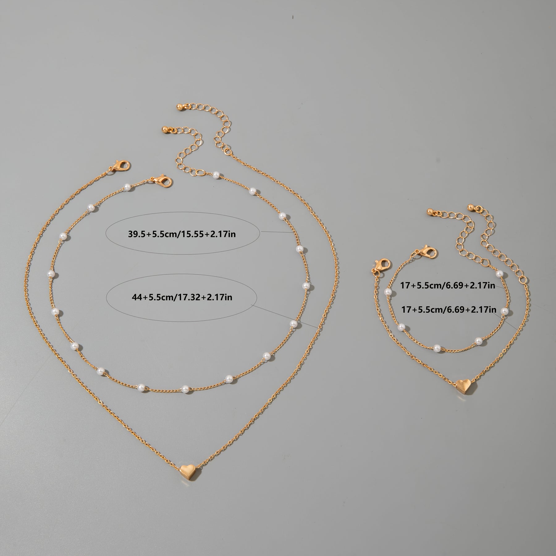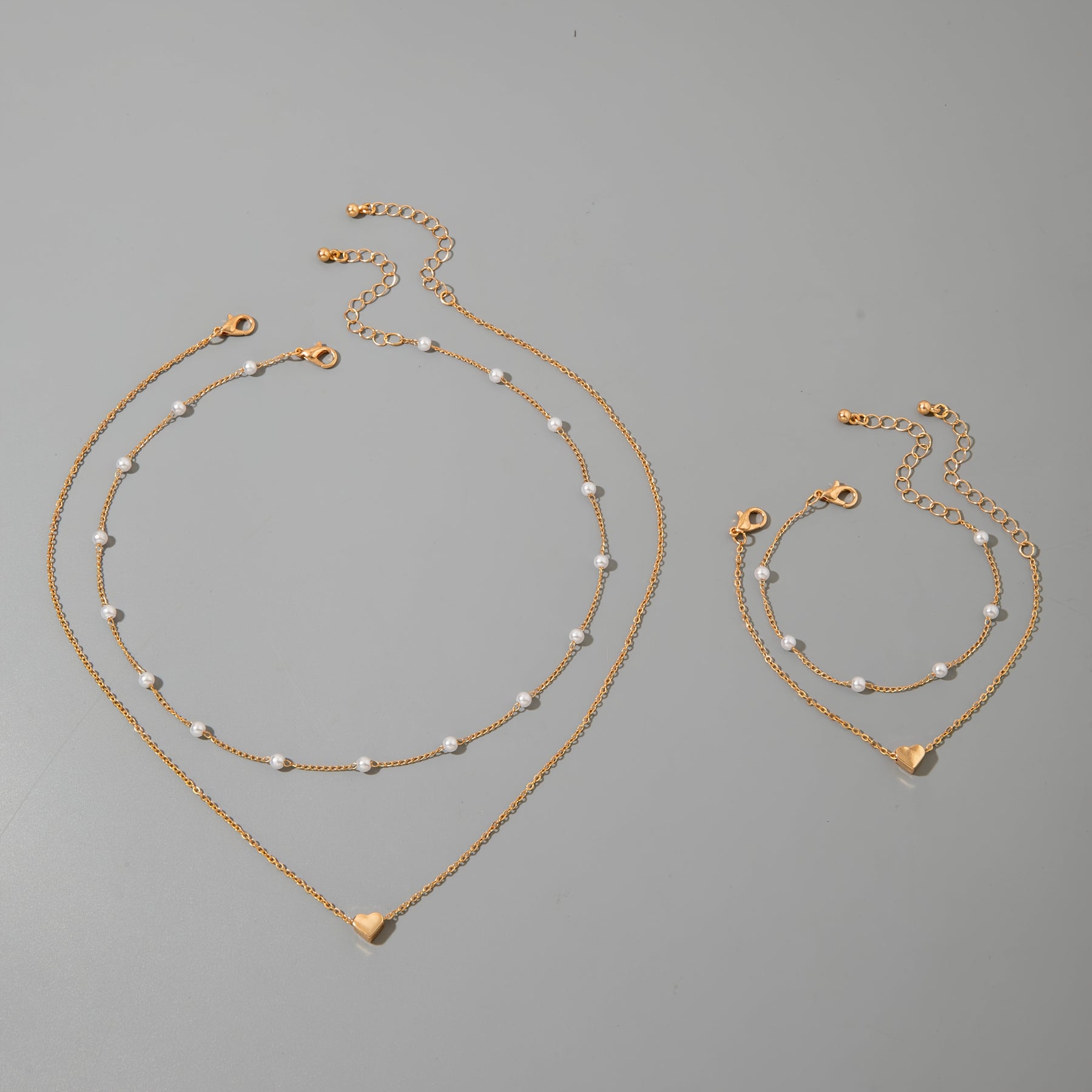 Indira | Modern Minimalist Heart & Pearl Necklace + Bracelet Set